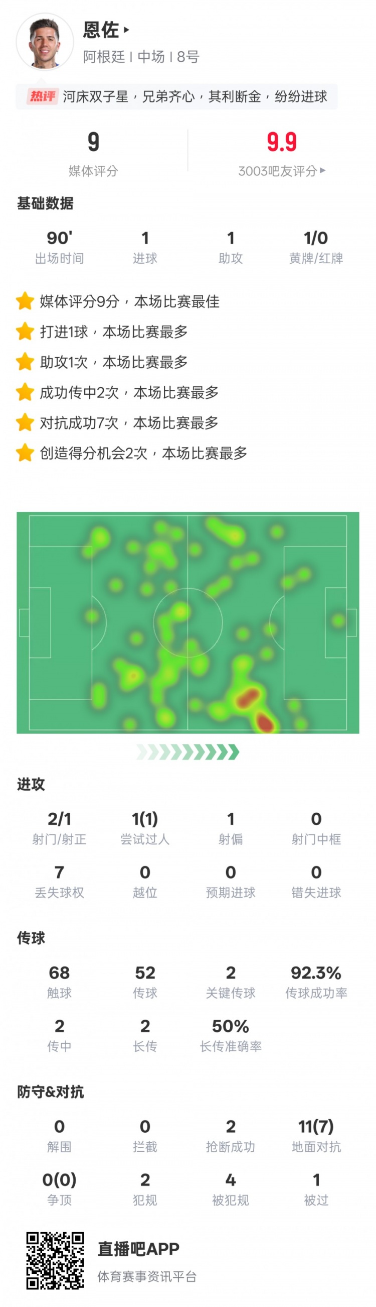 3月26日訊 世預(yù)賽南美區(qū)第14輪,阿根廷4-1巴西,恩佐首發(fā)出戰(zhàn),傳射建功,還有2次關(guān)鍵傳球,評(píng)分9.0全場最高。