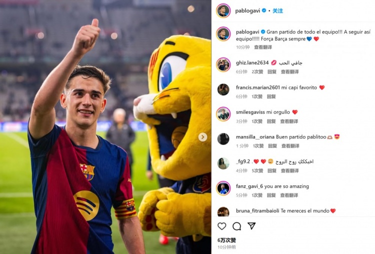 作為隊(duì)長(zhǎng)首發(fā)!20歲加維社媒:全隊(duì)踢出精彩比賽,巴薩繼續(xù)加油!