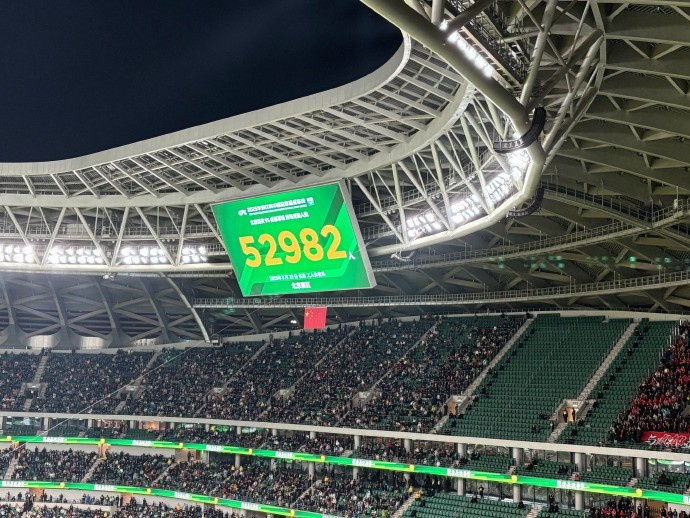 本場(chǎng)比賽是國(guó)安隊(duì)2025賽季首個(gè)中超主場(chǎng)賽事,加之球隊(duì)為于大寶舉辦退役儀式,因此共有52982名球迷來(lái)到現(xiàn)場(chǎng),共同見(jiàn)證了本場(chǎng)比賽。
