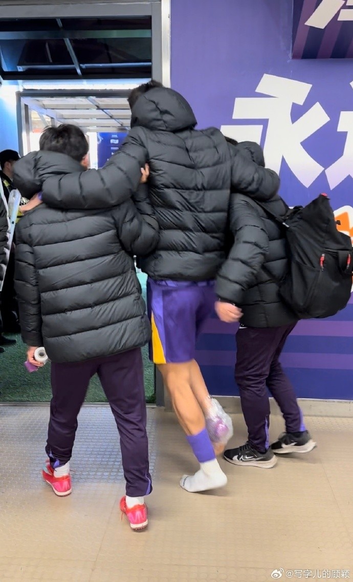 比賽中他去檢查車拍CT時,腳踝已經(jīng)腫了,當(dāng)時看情形,隊里最擔(dān)心的是骨折。影像結(jié)果排除了骨折,意味著最壞的結(jié)果沒出現(xiàn),指向比較復(fù)雜的韌帶問題,但是到底有多嚴(yán)重,需要核磁共振進(jìn)一步認(rèn)定,再制定恢復(fù)方案,而拍核磁大概也要等稍微消腫。估計于指導(dǎo)籠統(tǒng)說“最近幾場無法登場”,也是這個原因?;氐綀龅睾?,薩爾瓦多執(zhí)意從擔(dān)架車上下來,要返回球場和隊友們在一起(就是這張圖),結(jié)果于指導(dǎo)正好迎面而來,把他攔回休息室了。