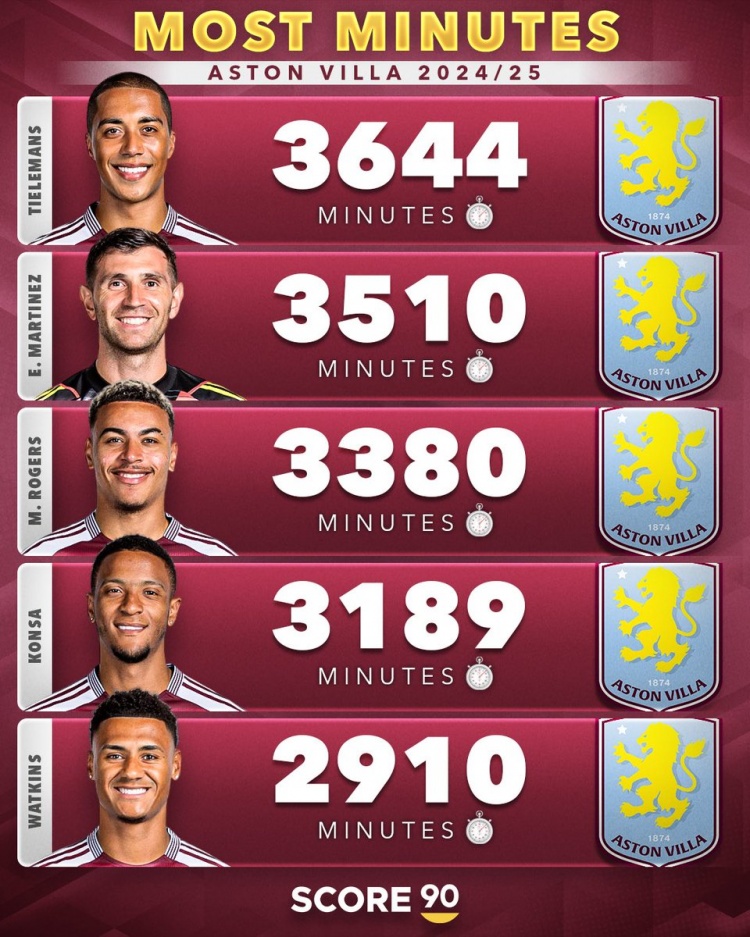 3月29日訊 Score90列出了歐冠8強(qiáng)球隊(duì)本賽季出勤排名,皇馬隊(duì)內(nèi)巴爾韋德出場(chǎng)3694分鐘最多,巴薩隊(duì)內(nèi)孔德出場(chǎng)3631分鐘最多。