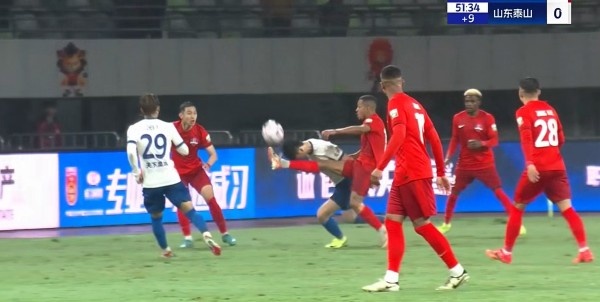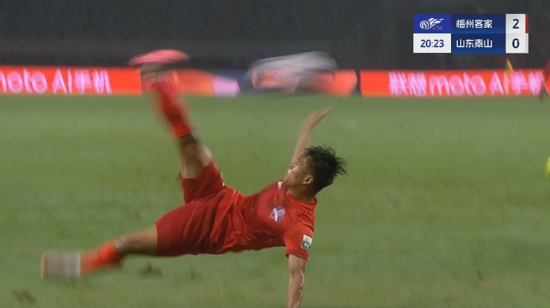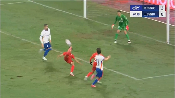 第20分鐘,梅州客家再入一球,約契奇送出助攻,楊超聲禁區(qū)內(nèi)高難度倒鉤破門,梅州客家2-0領(lǐng)先山東泰山。