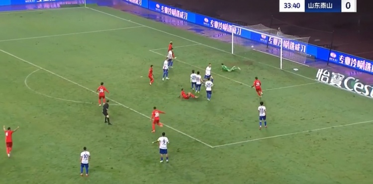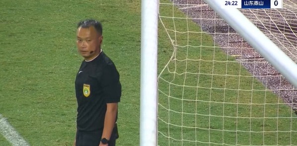 第25分鐘,山東泰山的球網(wǎng)出現(xiàn)問題,比賽因此暫停一小會?!?/p>