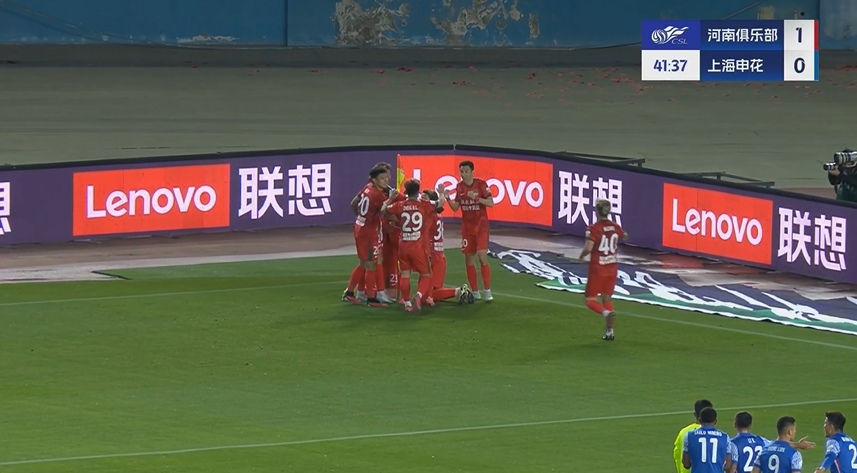 比賽第41分鐘,申花后防混亂,鮑亞雄出擊失誤,吳曦門線解圍,隨后阿奇姆彭助攻邁達(dá)納頭球破門,吳曦在球門內(nèi)還試圖用手把球擋出,但未能阻止皮球入網(wǎng)。河南1-0領(lǐng)先申花!
