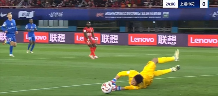第8分鐘,申花前場(chǎng)右側(cè)定位球開到禁區(qū),路易斯頭球攻門角度太正被門將沒收,同時(shí)也是越位在先了↓
