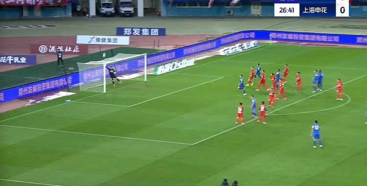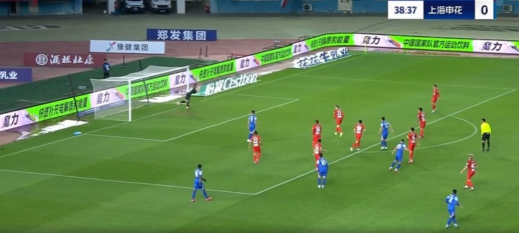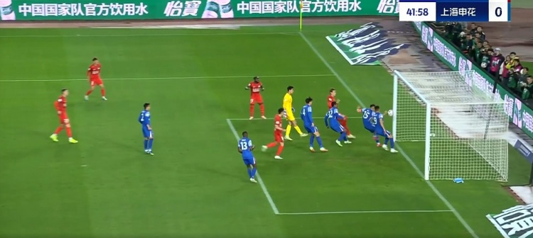 第39分鐘,申花前場(chǎng)連續(xù)的進(jìn)攻,吳曦左側(cè)肋部的凌空抽射被門將抱住↓