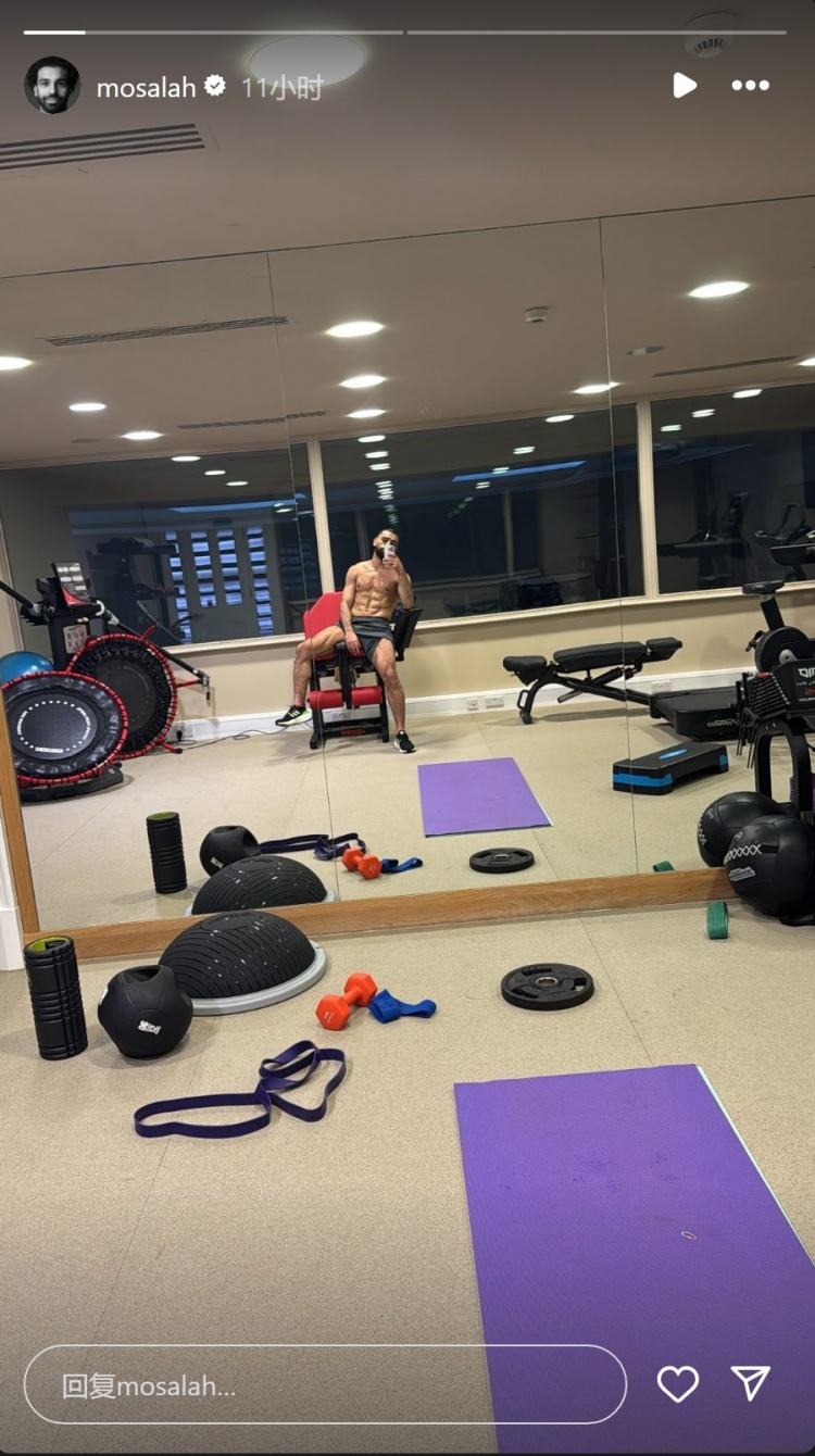 3月29日訊 利物浦前鋒薩拉赫更新社媒動態(tài),曬出在健身房內的照片。