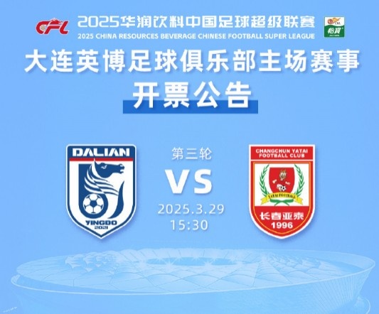 3月29日訊 今天下午大連英博主場(chǎng)對(duì)陣長(zhǎng)春亞泰的中超第三輪比賽,將于今天上午10點(diǎn)再次開(kāi)票。