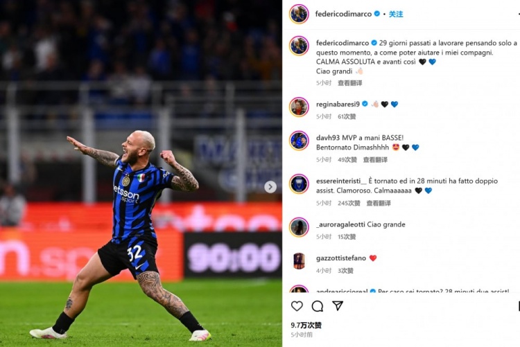 迪馬爾科也在賽后通過(guò)社媒曬出了自己的慶祝照并配文:“過(guò)去29天我都在想著這樣的時(shí)刻,只想著我如何才能夠幫助到隊(duì)友。保持冷靜,繼續(xù)前進(jìn)????????各位再會(huì)!”