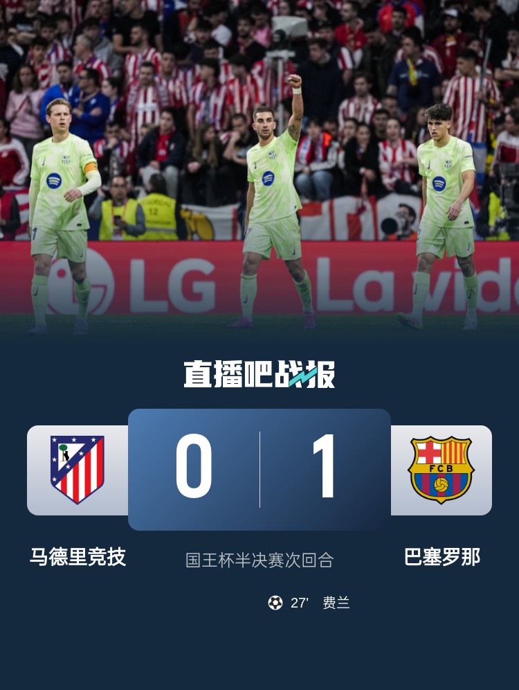 費(fèi)蘭制勝,巴薩客場1-0戰(zhàn)勝馬競,總比分5-4淘汰馬競進(jìn)軍國王杯決賽,將對陣皇馬。