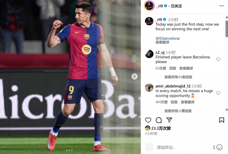 本場比賽萊萬替補登場打進一球,賽后他也在個人社媒曬出本場慶祝進球照片,配文寫道:“今天的比賽只是第一回合,現(xiàn)在我們專注于贏下下一回合!”