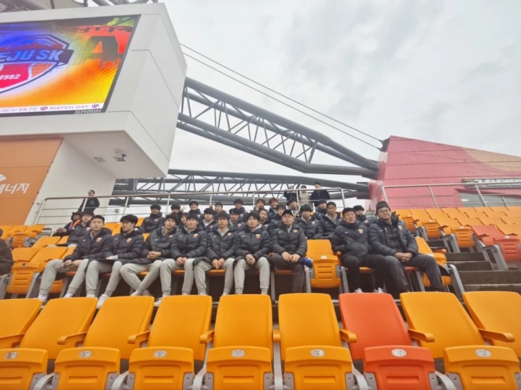 此外,為了讓隊(duì)員們更好地了解當(dāng)?shù)氐淖闱蛭幕?,也作為努力?xùn)練之余的調(diào)劑,教練組還在冬訓(xùn)期間組織全隊(duì)觀看了K聯(lián)賽濟(jì)州SK對(duì)陣首爾的比賽,希望隊(duì)員能夠在觀賽的過程中有所收獲。