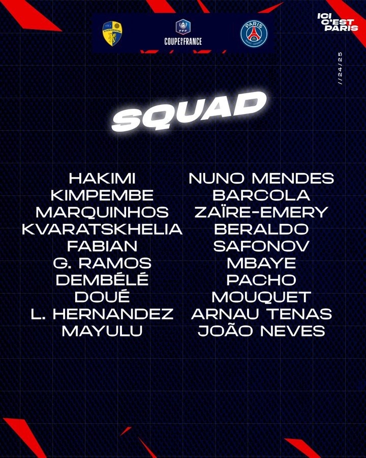 前鋒:克瓦拉茨赫利亞、貢薩洛-拉莫斯、登貝萊、杜埃、巴爾科拉、姆巴耶