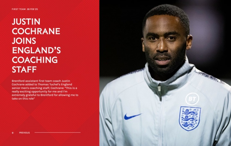 2月26日訊 布倫特福德官網(wǎng)消息,俱樂(lè)部一線隊(duì)助理教練賈斯汀-科克倫加入圖赫爾的英格蘭男足一線隊(duì)教練組??瓶藗悓⒗^續(xù)擔(dān)任布倫特福德一線隊(duì)助理教練,他自2022年7月以來(lái)一直擔(dān)任這一職位,將以雙重身份擔(dān)任這兩個(gè)角色。