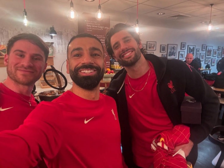 本場比賽,麥卡利斯特和索博斯洛伊分別為利物浦進球,薩拉赫賽后曬出自己與兩人的合照。