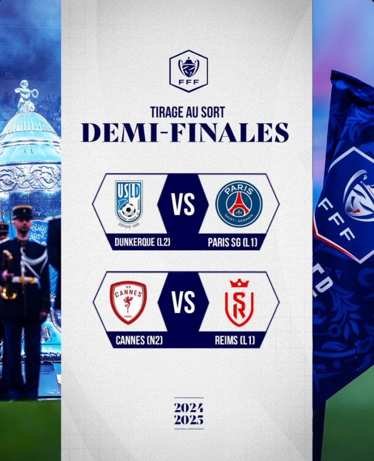 法國(guó)杯半決賽對(duì)陣:巴黎VS敦刻爾克、蘭斯VS戛納