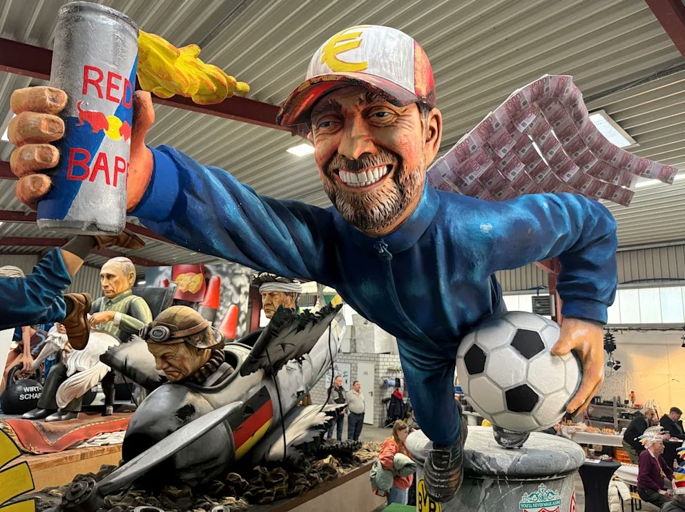 據(jù)報道,該彩車上是前美因茨球員和教練克洛普的身影,他的翅膀是用鈔票做成的,手里拿著一罐紅牛標志性的能量飲料和一個足球。彩車側(cè)面還寫道:“對于克洛普來說,他不再關(guān)心那些曾經(jīng)很重要的價值觀。由于紅牛用大量金錢誘惑他,他現(xiàn)在正從自己的寶座上跌落下來。”