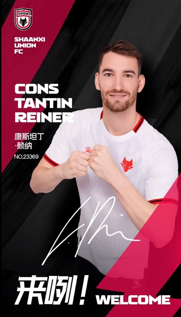 歡迎賴納初到中國職業(yè)聯(lián)賽,成為陜西聯(lián)合的一員!