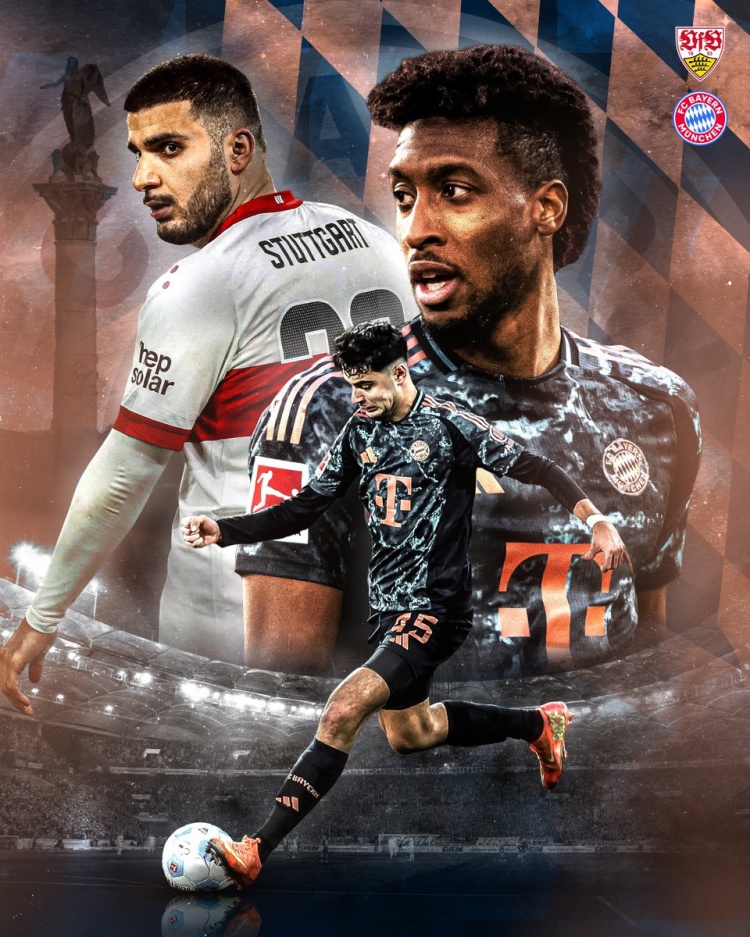 拜仁社媒發(fā)布為此役制作的海報,科曼、帕夫洛維奇以及斯圖加特前鋒翁達(dá)夫出鏡。