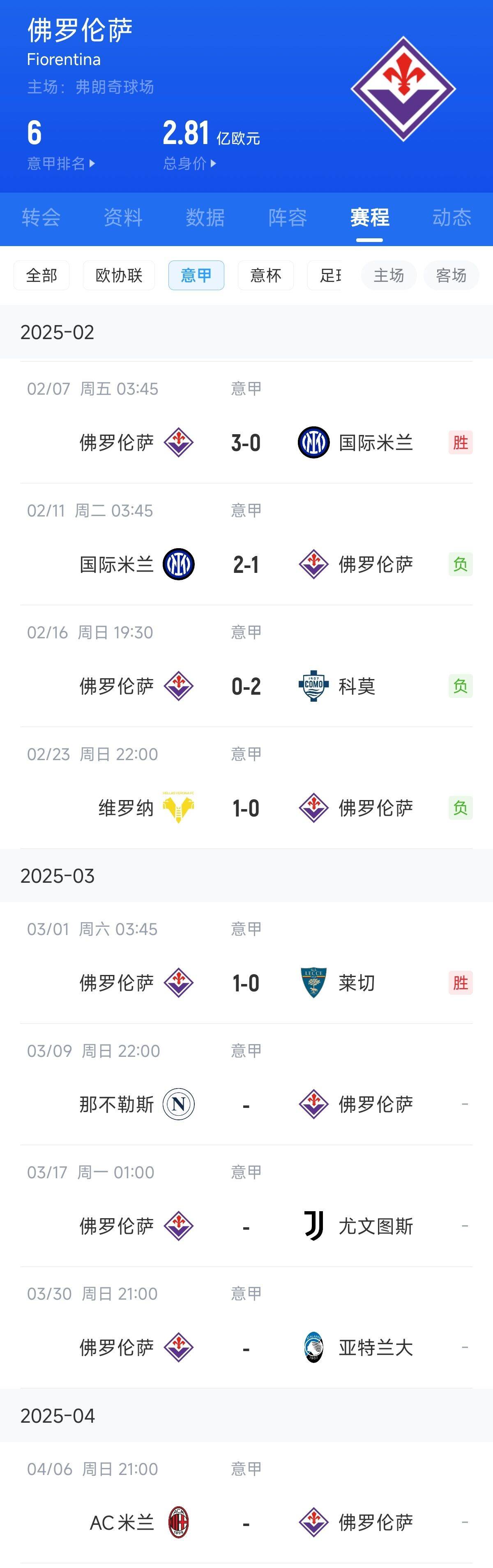 冠軍判官?佛羅倫薩未來(lái)3輪分別打意甲2/3/4,此前曾3-0第1名國(guó)米