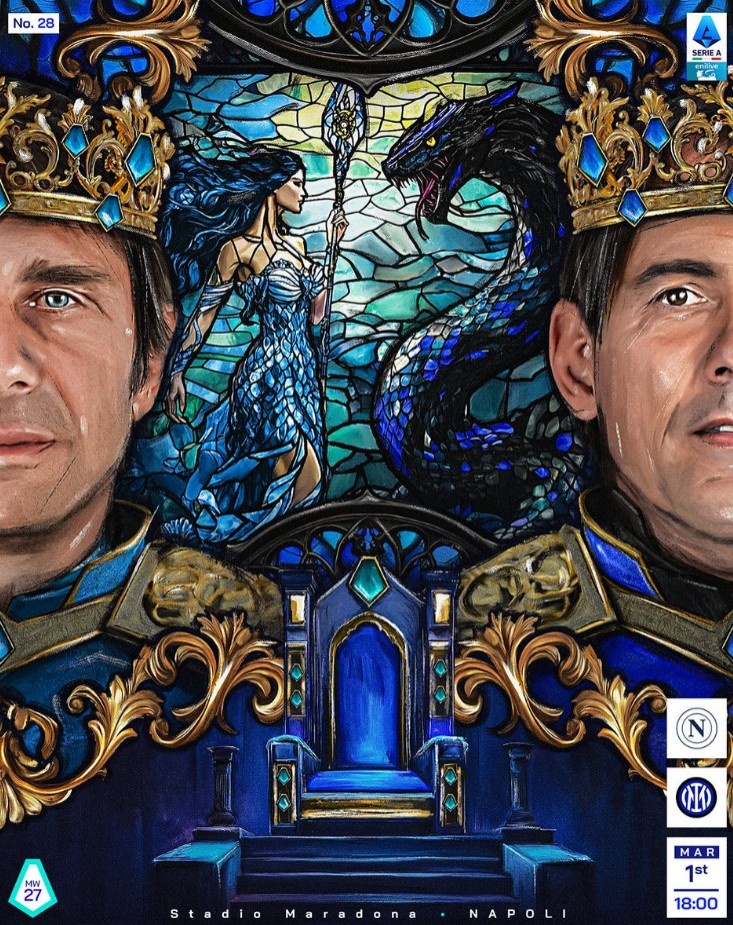 3月1日訊 本輪意甲將迎來(lái)國(guó)米與那不勒斯的焦點(diǎn)對(duì)話,意甲官方也曬出海報(bào)為本場(chǎng)比賽預(yù)熱,海報(bào)中的主角是兩隊(duì)主帥孔蒂、小因扎吉,兩人頭戴王冠爭(zhēng)奪王位。