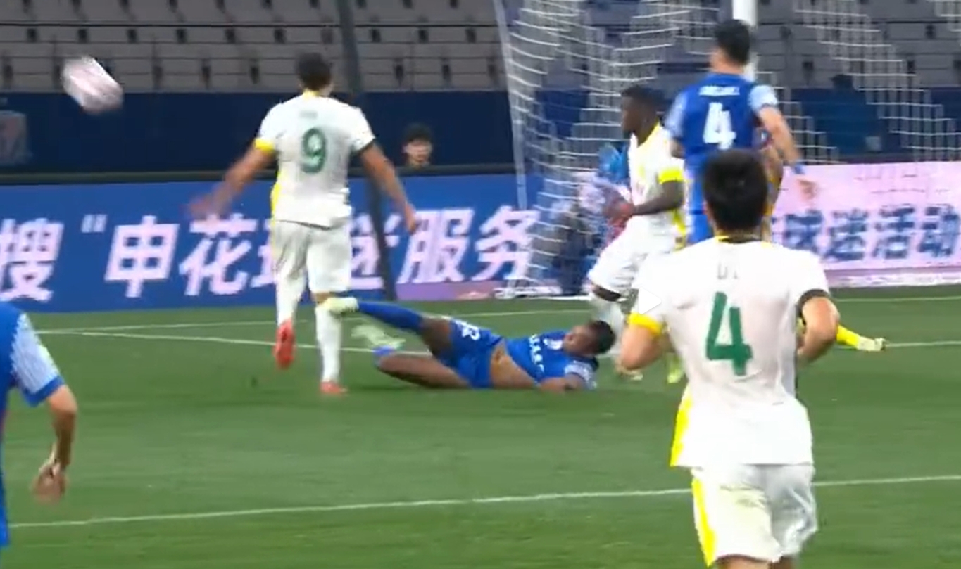 艾迪禁區(qū)內亮鞋底鏟到張玉寧小腿,裁判麥麥提江沒有表示