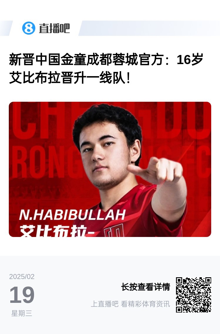 U17國足陣中,艾比布拉同樣被提拔至成都蓉城一線隊(duì),今晚蓉城對(duì)陣津門虎,16歲的艾比布拉能否上演中超首秀?