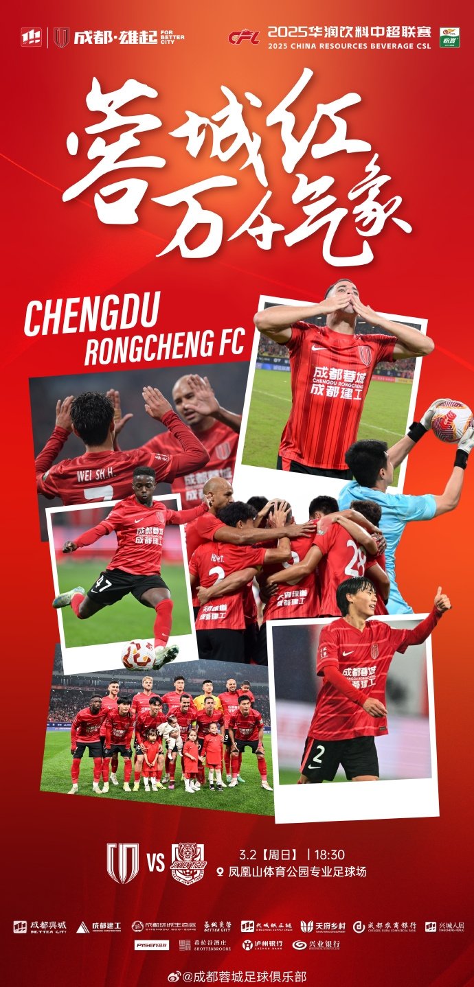 03月02日訊 北京時(shí)間今天18點(diǎn)30,中超第二輪,成都蓉城坐鎮(zhèn)主場(chǎng)對(duì)陣天津津門虎,賽前首發(fā)陣容公布。