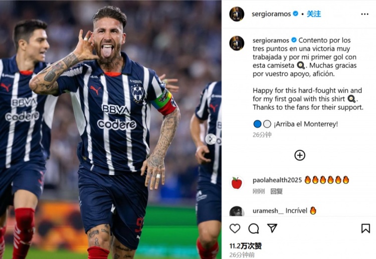 攻入蒙特雷生涯首球,拉莫斯:為艱苦的勝利和首球感到開(kāi)心