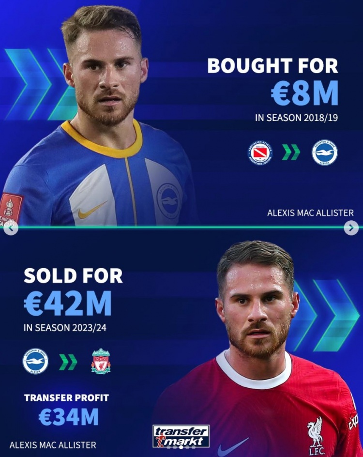 麥卡利斯特:800萬歐元引進,4200萬歐元出售,凈賺3400萬歐元