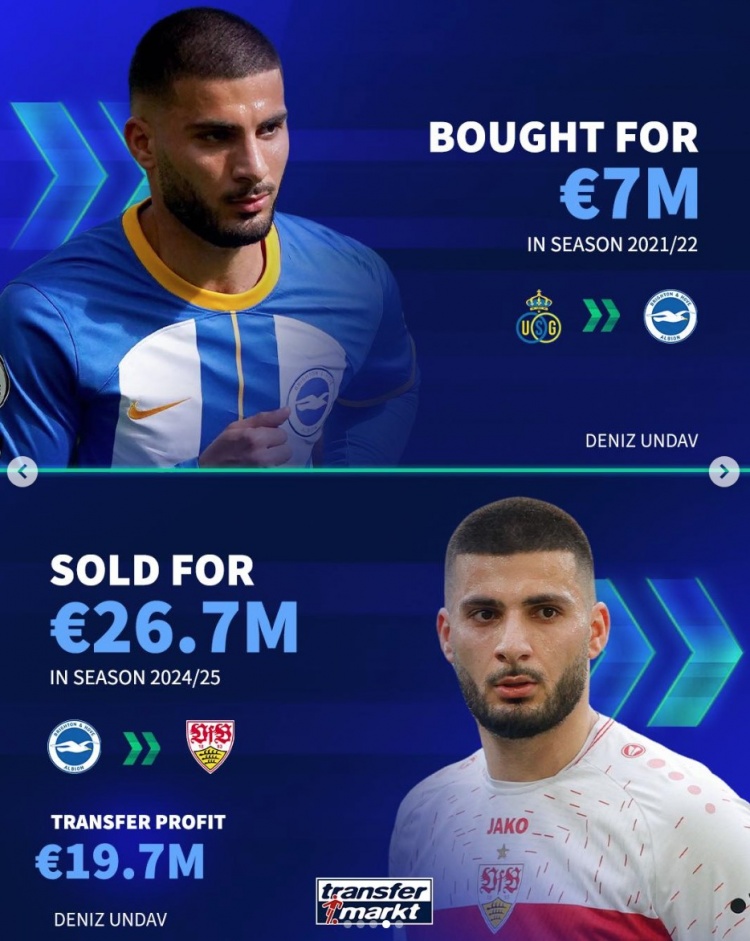 德轉列布萊頓近年5筆低買高賣,凈賺超2億歐:凱塞多&庫庫在列