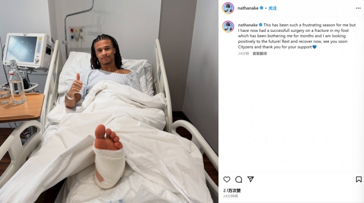 阿克表示:“這對我而言是一個令人沮喪的賽季,但現(xiàn)在我已經(jīng)成功接受了腳部骨折手術(shù)。這一傷病在過去幾個月令我倍感困擾,現(xiàn)在我對未來充滿信心!當(dāng)前仍需休養(yǎng)康復(fù),城民們,很快再見!感謝你們的支持。”