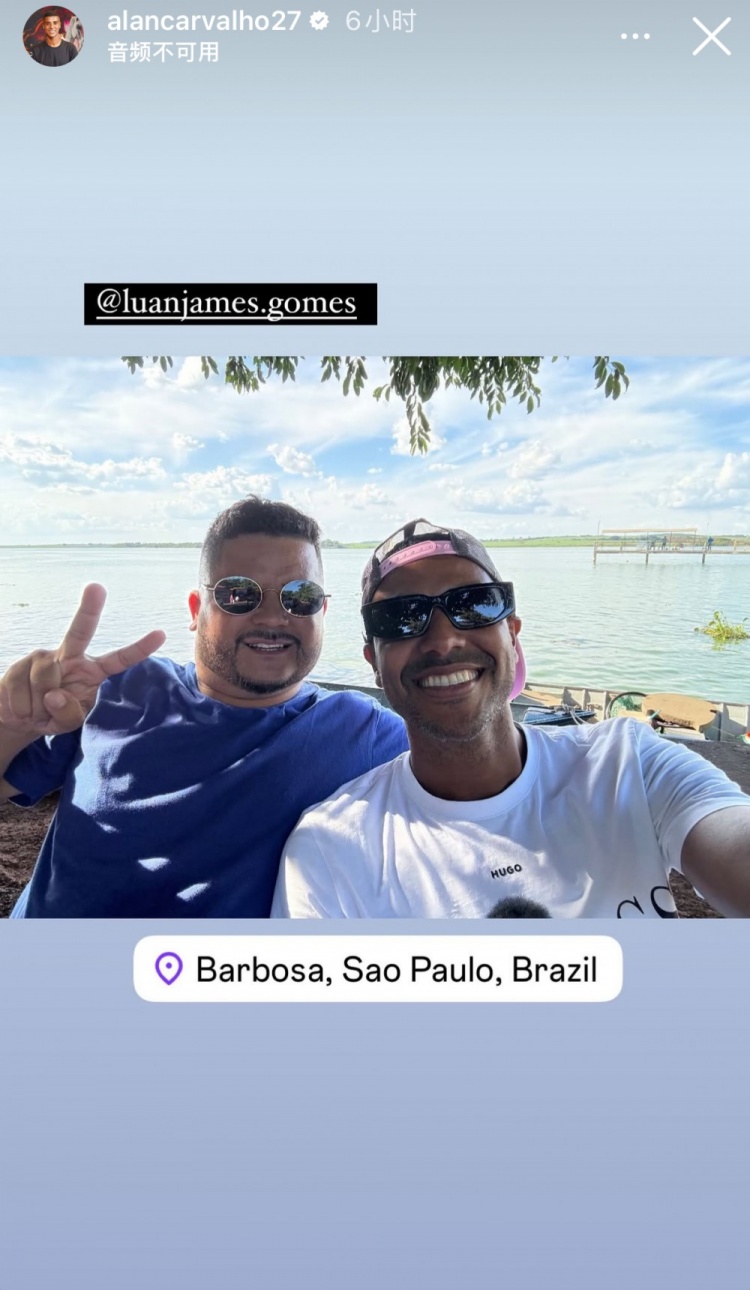 阿蘭曬出了一張他與友人在圣保羅巴爾博薩市鐵特河前的合影,享受假期生活的阿蘭,似乎也并不急于重返足壇。