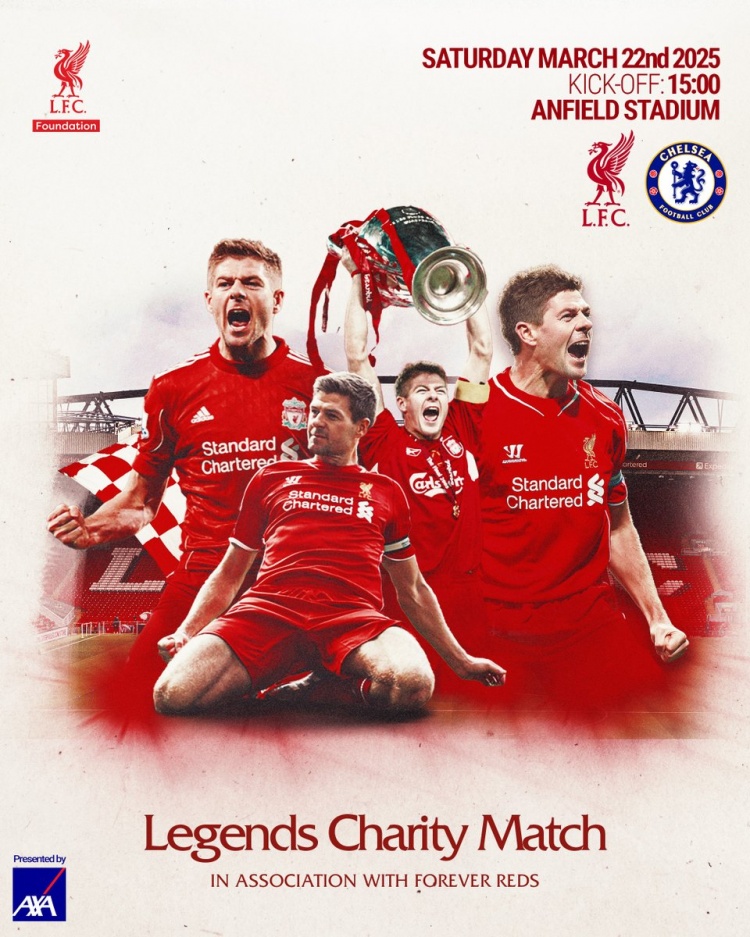 本場比賽將于3月22日周六于安菲爾德進(jìn)行,比賽所得的所有收入將捐給利物浦足球俱樂部基金會(huì),并支持包括Forever Reds、切爾西俱樂部基金會(huì)和切爾西球員信托基金在內(nèi)的受益人。