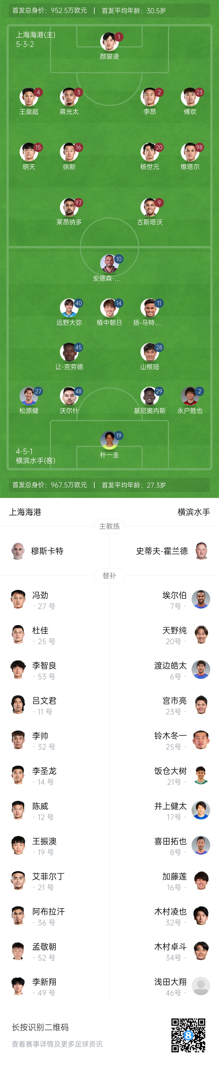 03月04日訊 北京時(shí)間今晚20點(diǎn),亞冠精英聯(lián)賽東亞區(qū)1/8決賽首回合,上海海港主場迎戰(zhàn)橫濱水手,賽前雙方公布首發(fā)陣容。