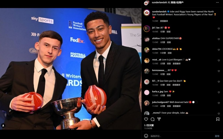 3月4日訊 官方消息,桑德蘭中場喬貝-貝林厄姆以及克里斯-里格獲英格蘭東北地區(qū)足球作家協(xié)會(huì)評選的年度最佳年輕球員獎(jiǎng)。