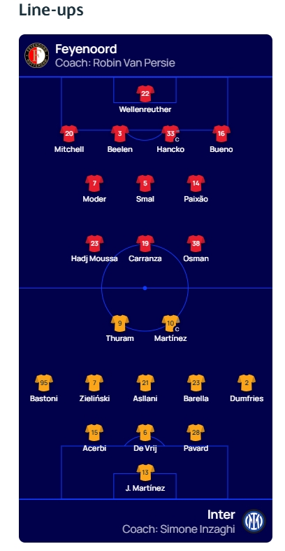 國米vs費耶諾德首發(fā):勞塔羅、小圖拉姆、阿斯拉尼出戰(zhàn)