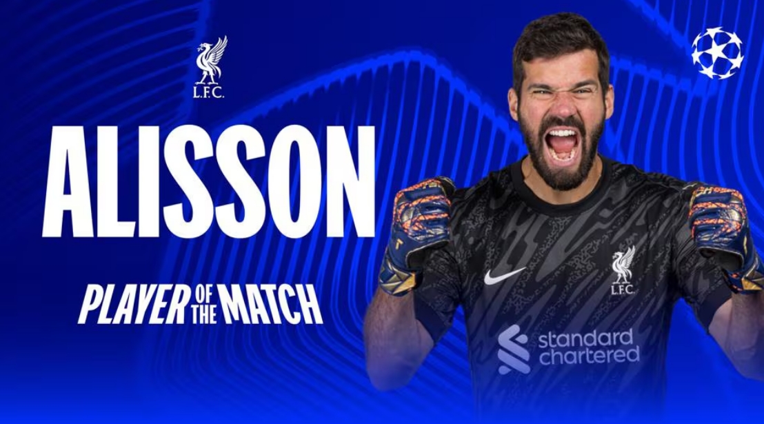 9次撲救力保球門不失,官方:阿利森當選利物浦1-0巴黎全場最佳