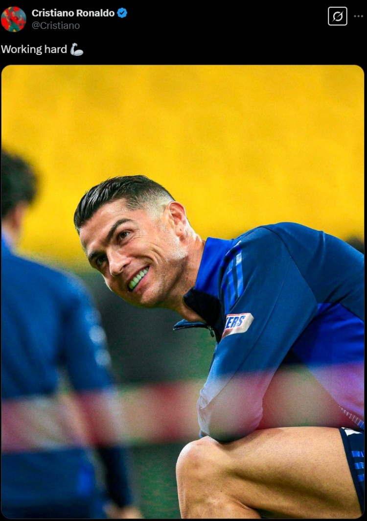 笑容洋溢心情不錯,C羅社媒曬訓練照,配文:努力工作!