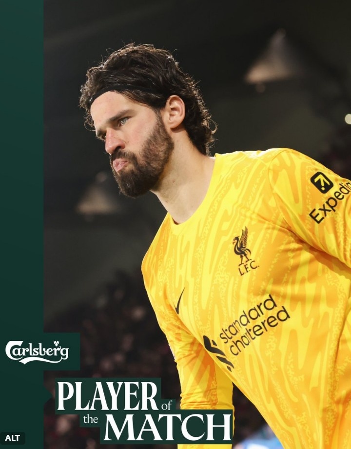 本場比賽阿利森貢獻(xiàn)9次撲救,幫助球隊最終零封取勝,賽后他也當(dāng)選利物浦官方評選出的本場隊內(nèi)最佳球員。