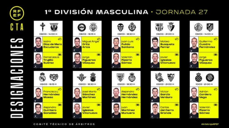主裁判:維加,VAR裁判:皮薩羅-戈麥斯。