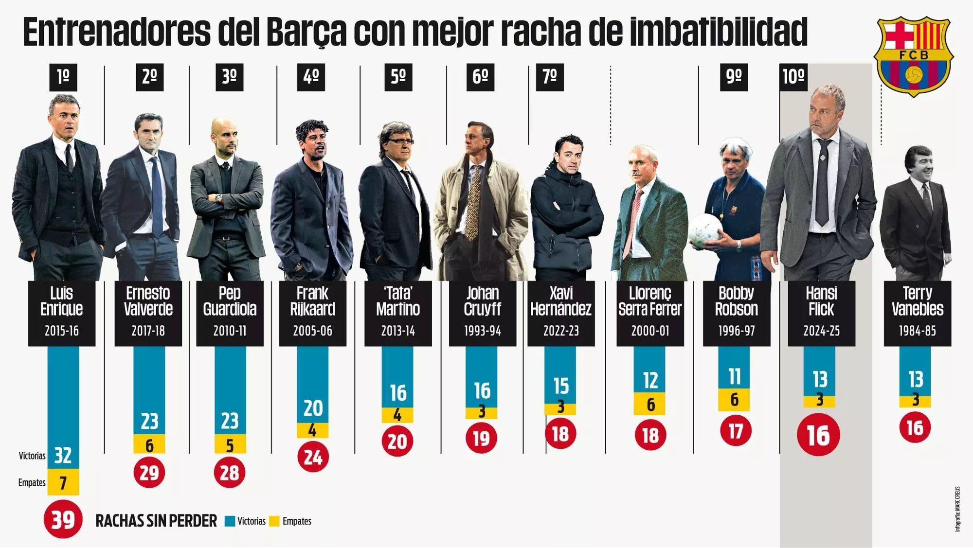 3月7日訊 根據(jù)《每日體育報》的報道,弗里克目前執(zhí)教巴薩16場取得13勝3平的不敗戰(zhàn)績,排名隊(duì)史第10位。