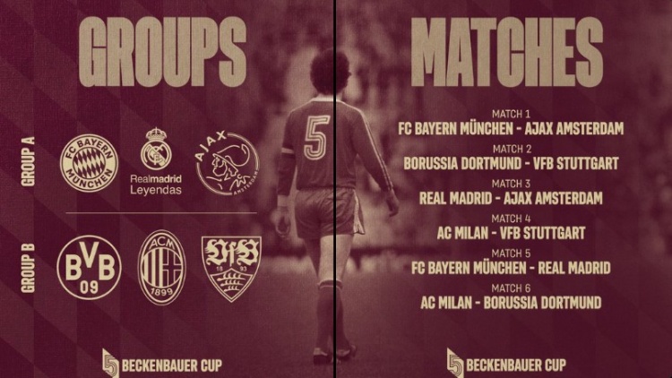 貝肯鮑爾杯分組賽程:A組拜仁皇馬阿賈克斯,B組米蘭多特斯圖加特